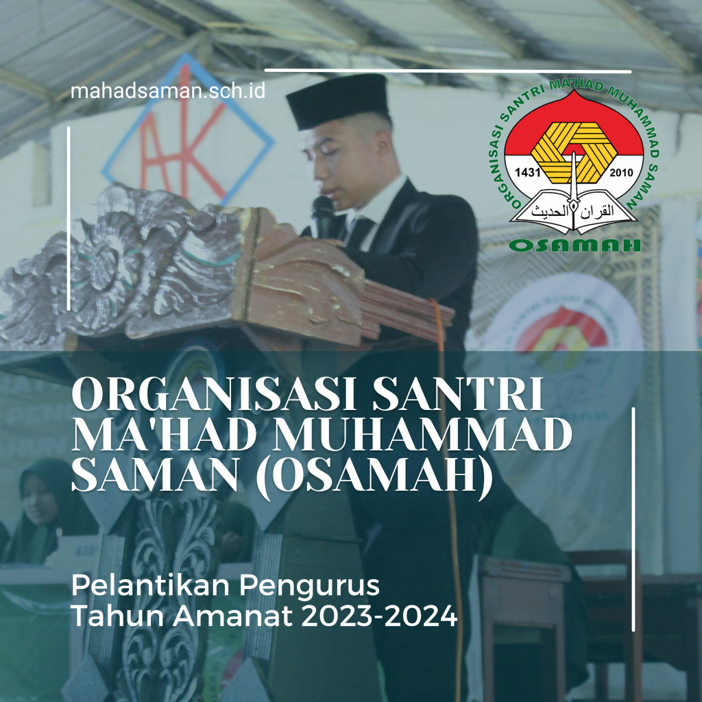 Pondok Pesantren Ma’had Muhammad Saman melaksanakan pelantikan pengurus OSAMAH(Organisasi Santri Ma’had Muhammad Saman) Periode Tahun Amanat 2023-2024 Pada hari Jum’at 03 Februari 2023 di Aula Yayasan Pendidikan Islam Hajjah Nyak Kaoy (YAPINKA) – Ma’had Muhammad Saman , pelantikan pengurus OSAMAH baru ini dihadiri oleh Pimpinan Harian Yayasan Bapak Hadian Firman Syahreza S.E, Kepala Sekolah SMA Bapak Alirman S.Ag, Kepala Sekolah SMP Ibu Nuraini S,Pd dan Kepala Pengasuhan Santri Ustadz Addien Fahmi S,Ag.